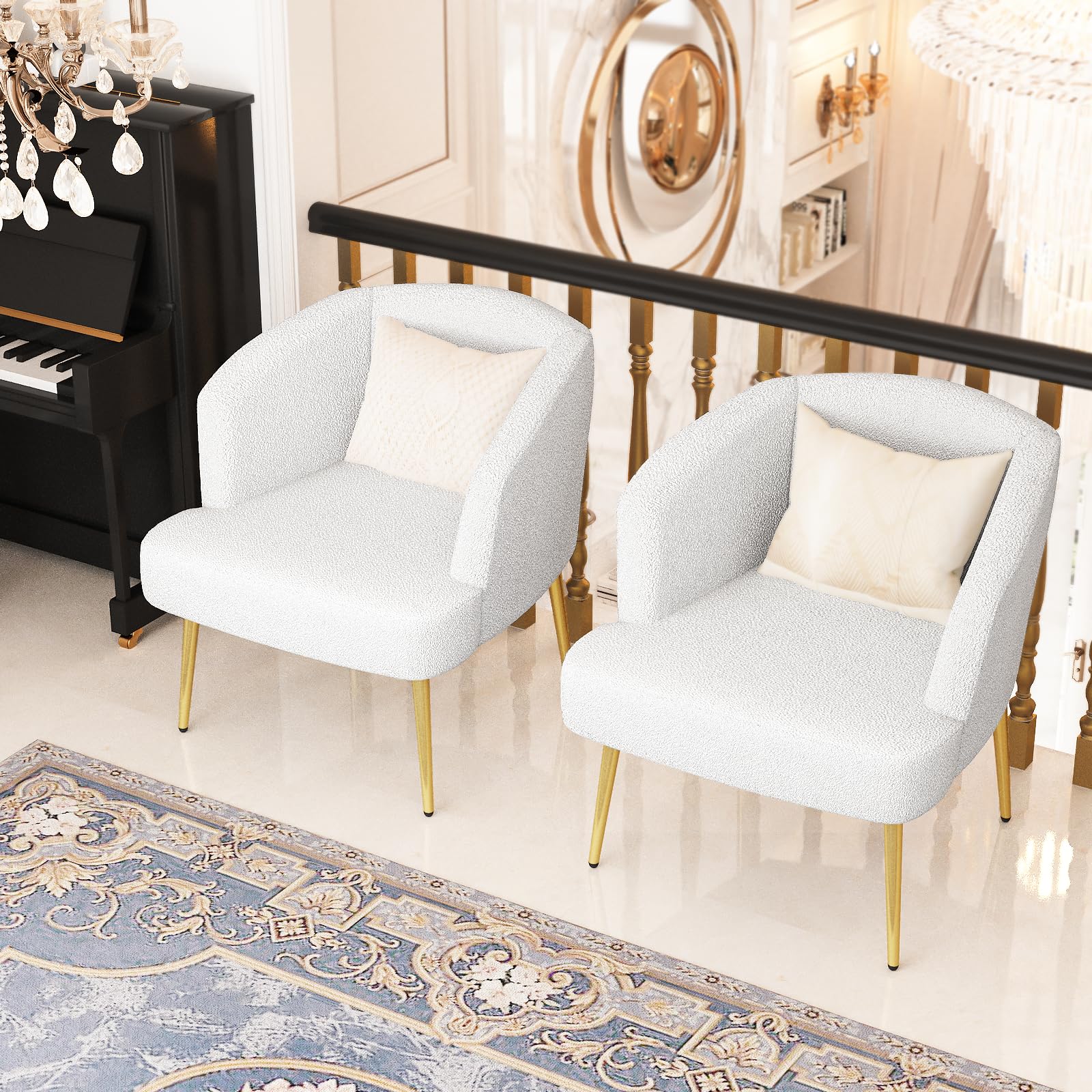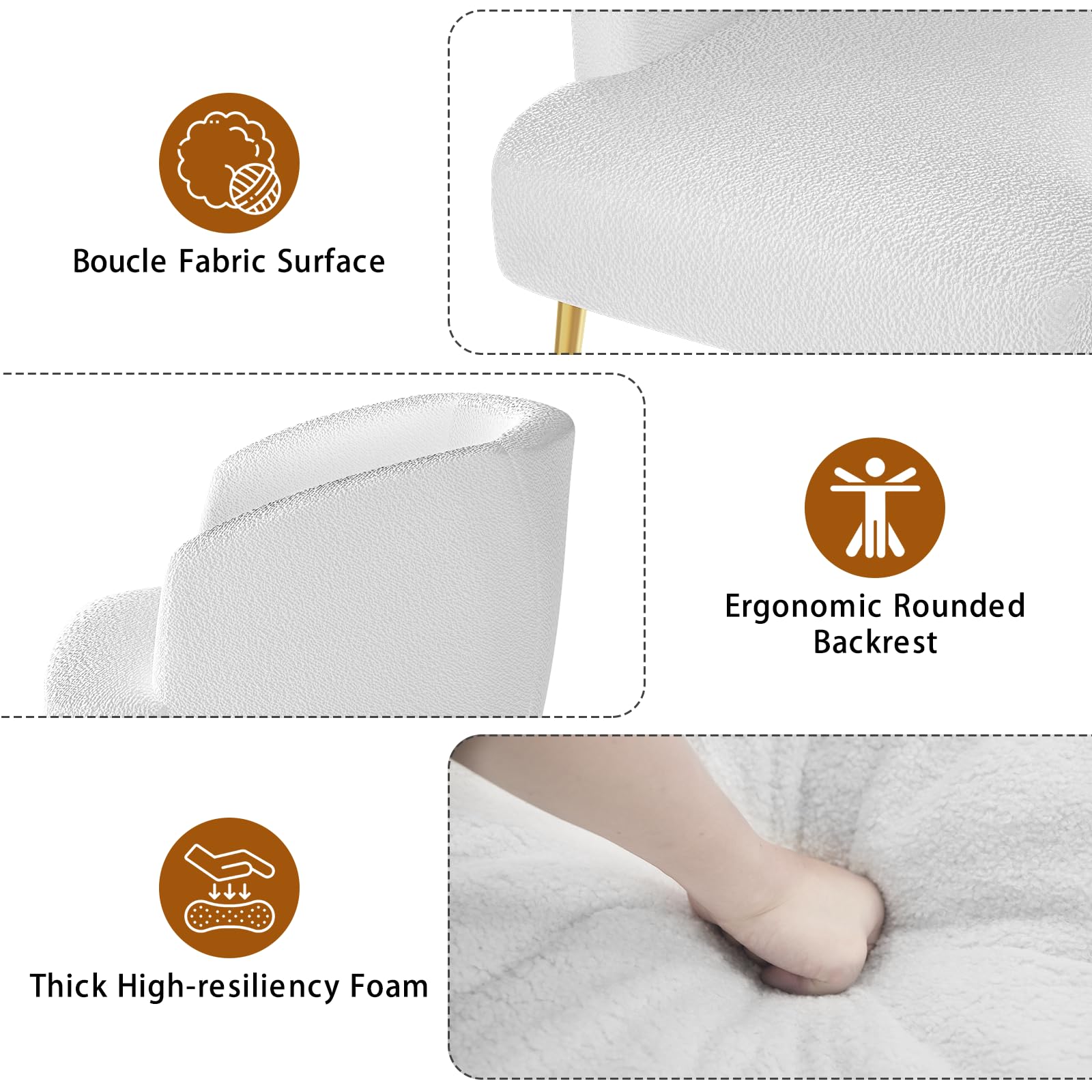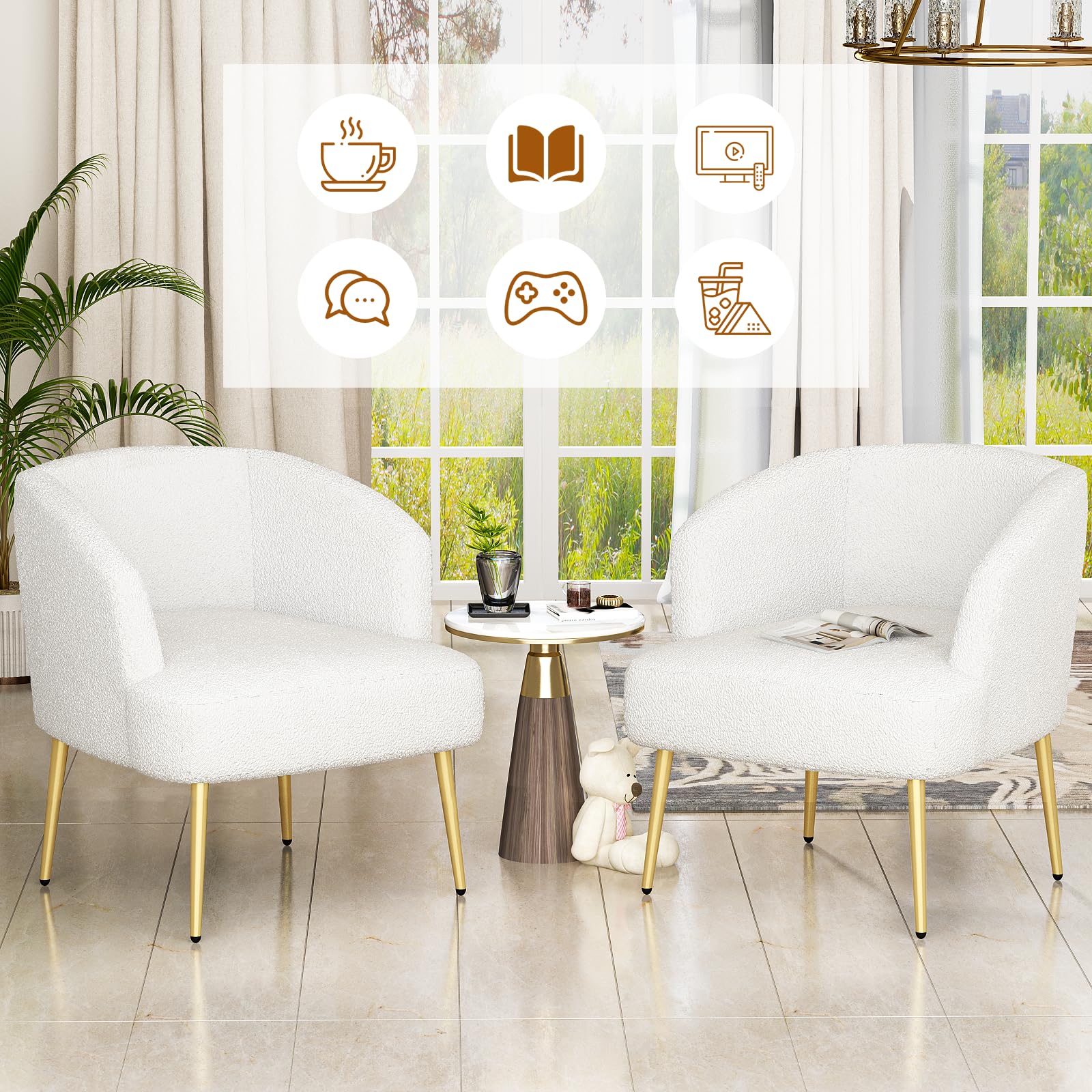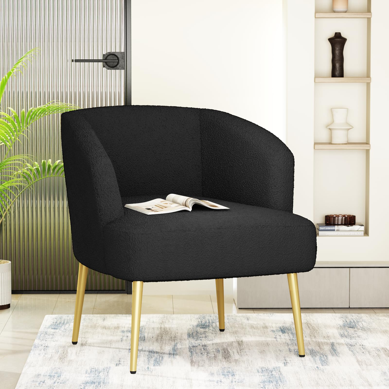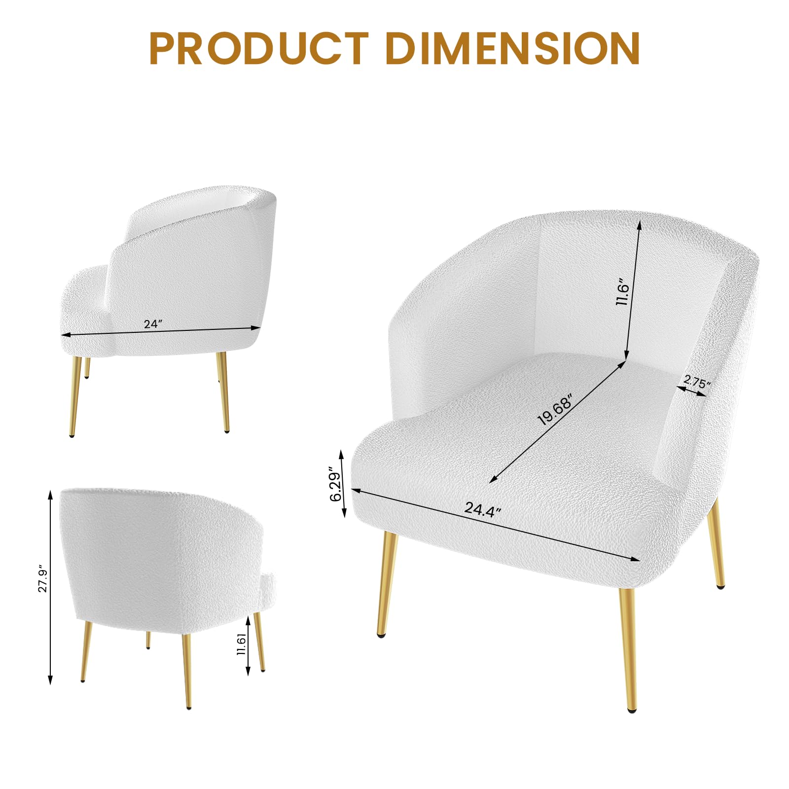 - 【Sherpa Accent Chair】Our living room chair is made of boucle fabric which is fluffy, warm, comfortable, high elasticity and not easy to shed. This chair has golden metal legs, a stylish curved backrest and armrests, and an overall very elegant design which will certainly enhance the decor of your living room, bedroom, office, etc.