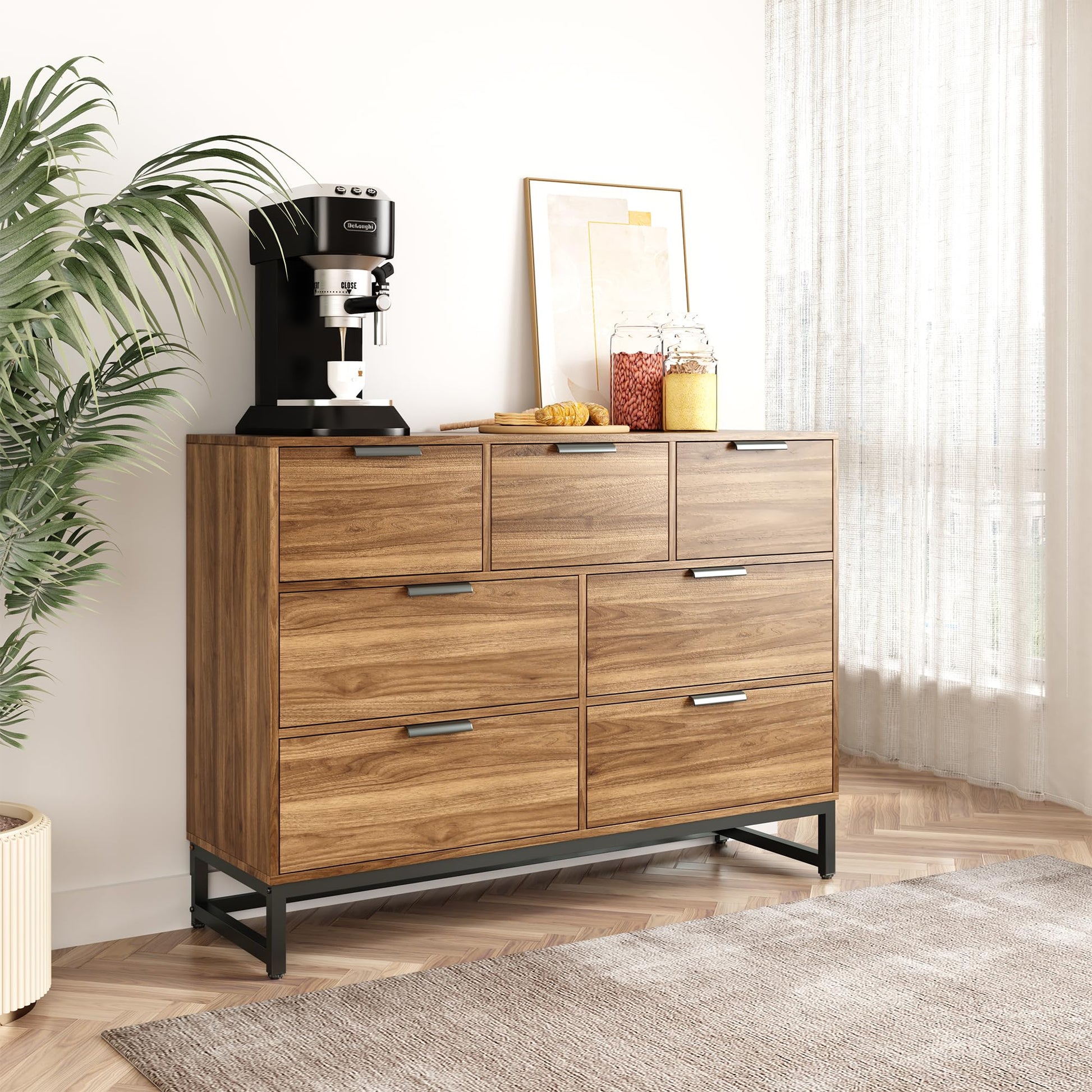 AWQM Long Chest of Drawers, 7 Drawer Dresser Wooden Cabinet Storage Tower