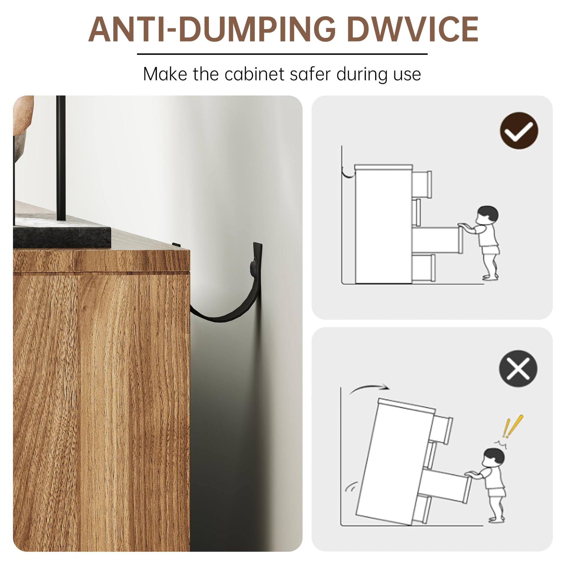 【WOODEN CHEST OF DRAWERS】Made of high quality man-made engineered wood with smooth metal glides and delicate easy-pull metal handles for easy opening and closing. The cabinet is equipped with an anti-tipping device. In addition to this, an extra black sturdy metal leg is added under the cabinet to give the bedroom chest of drawers stronger support and meet your pursuit of quality and safety.