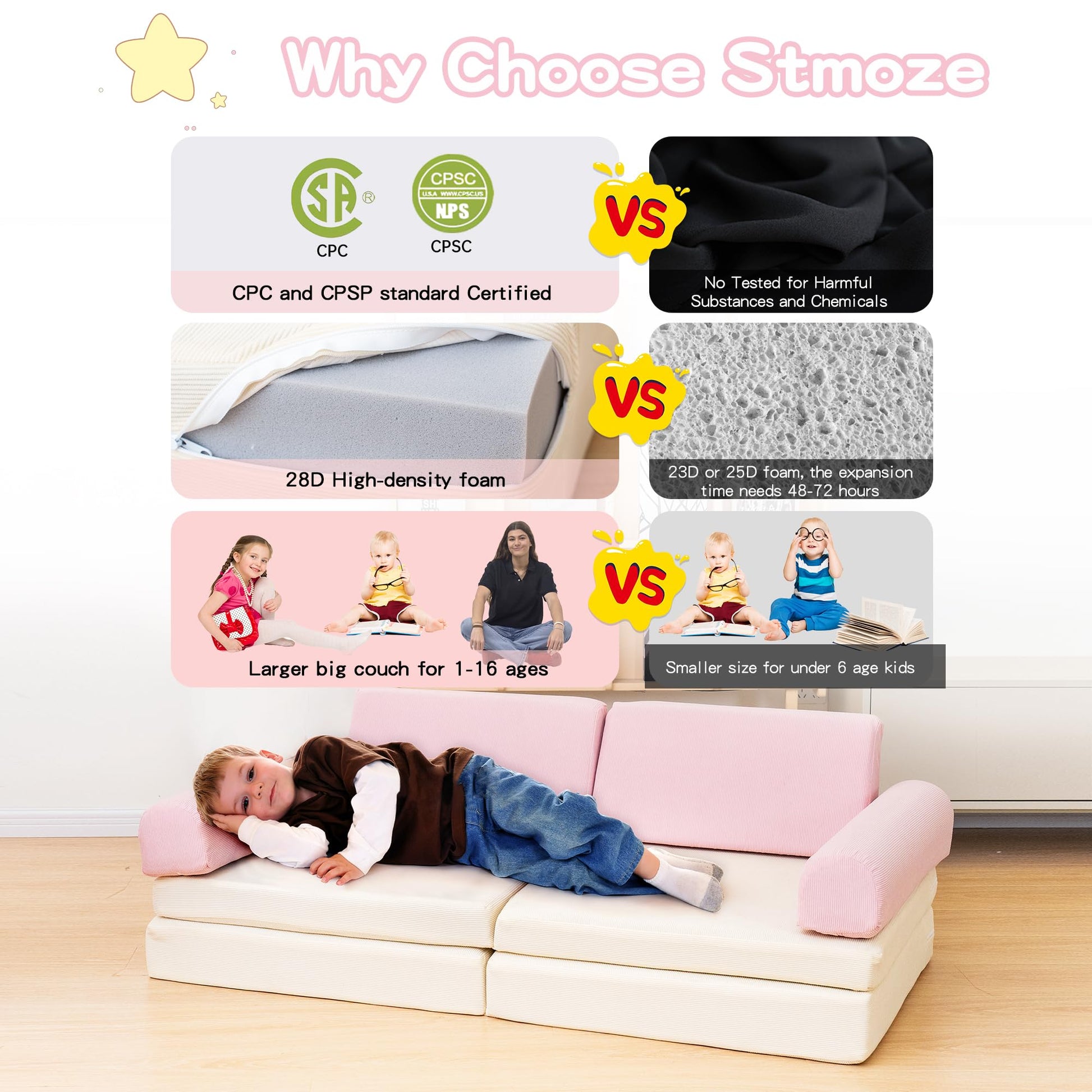 - 💖【Quick Expansion】Stmoze children's sofa uses high-rebound 28D sponge, which can be restored within 5-60 seconds without special treatment, and its durability and safety are better than low-quality sofas.