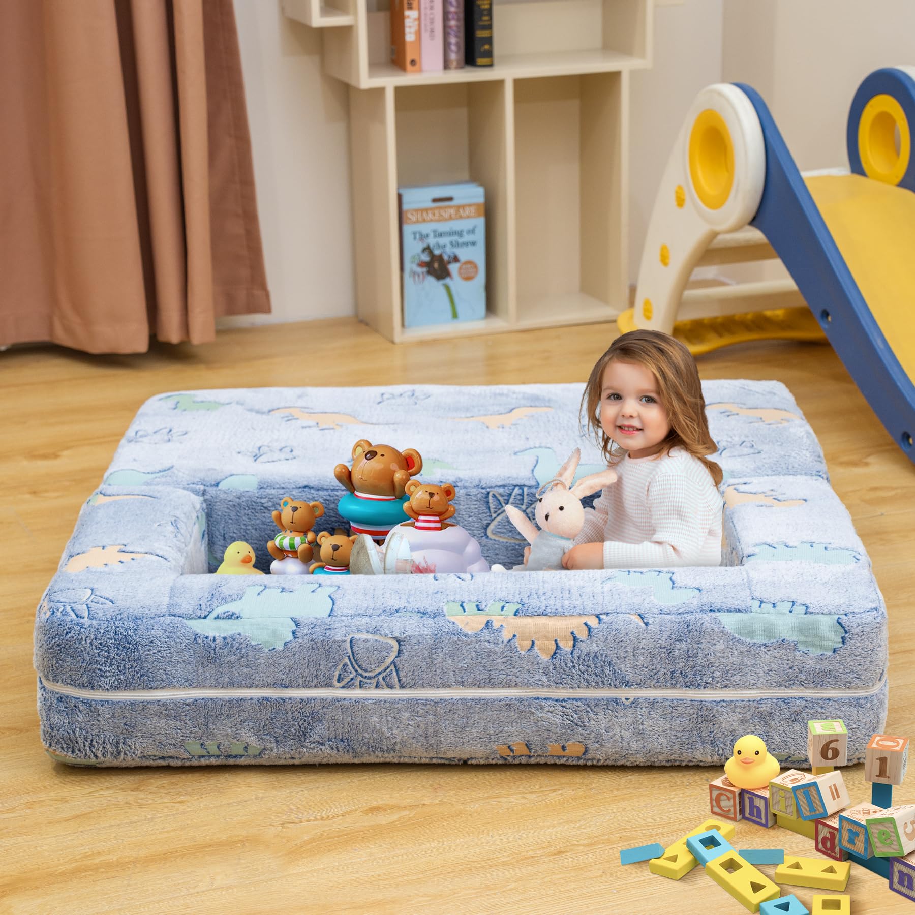 - ⭐【Soft and Durable Baby Couch】-The sofa's foam core stands up to years of play, providing a soft, low-impact surface for kids to jump, climb and fall on, with no hard edges or sharp corners for them to bump into! This kids lounge couch is easy to set up and reconfigure, offering hours of play and contributing to the improvement of children's motor skills and coordination.