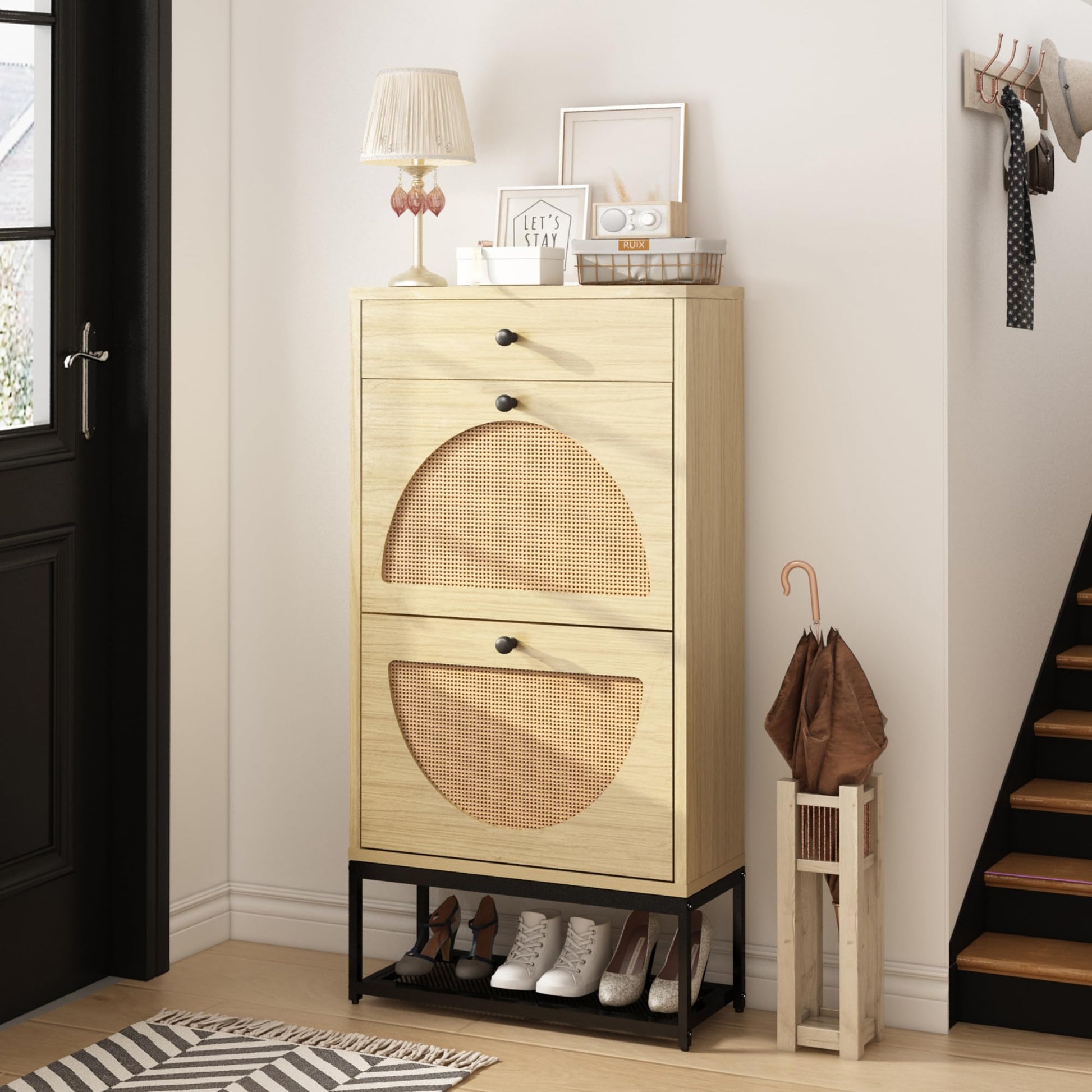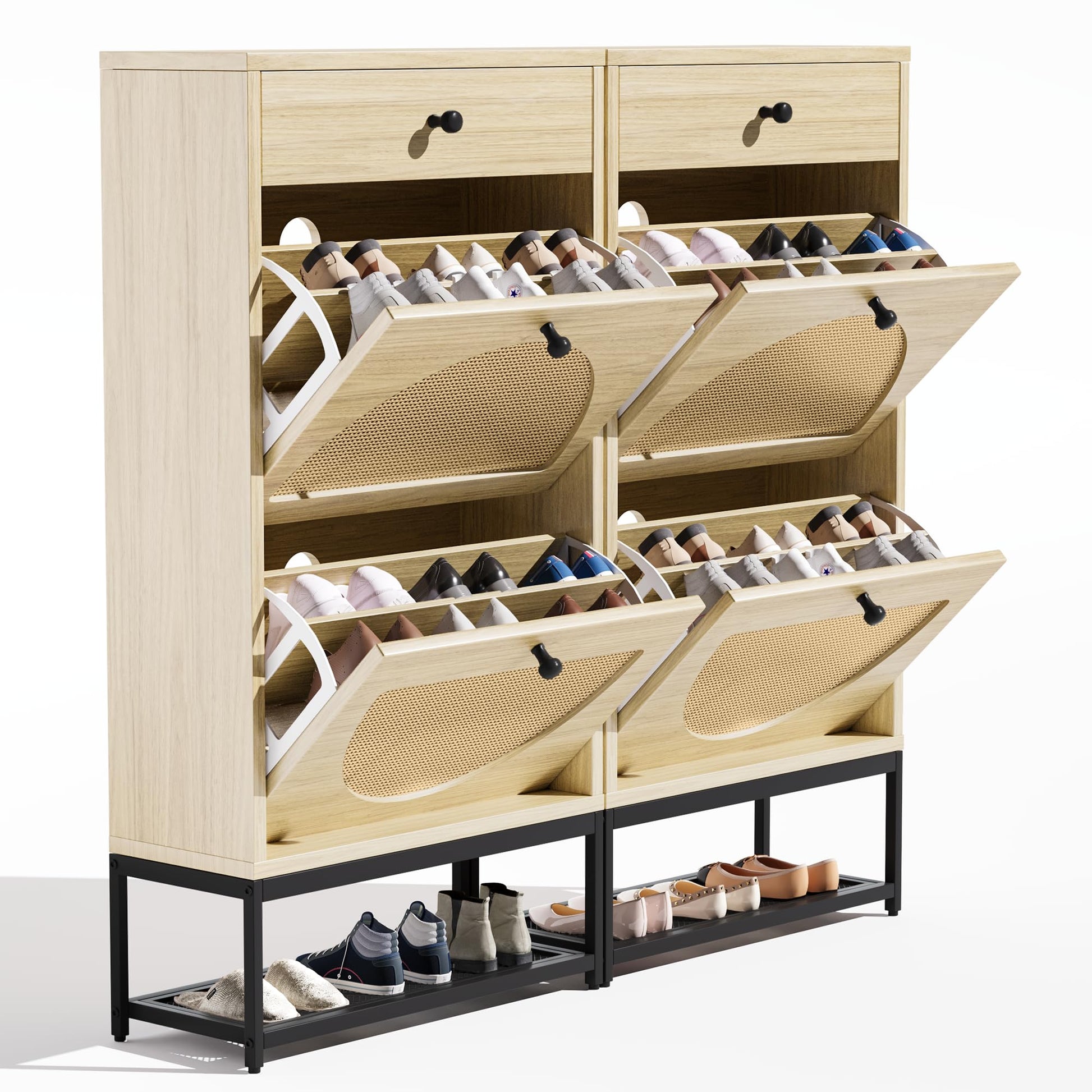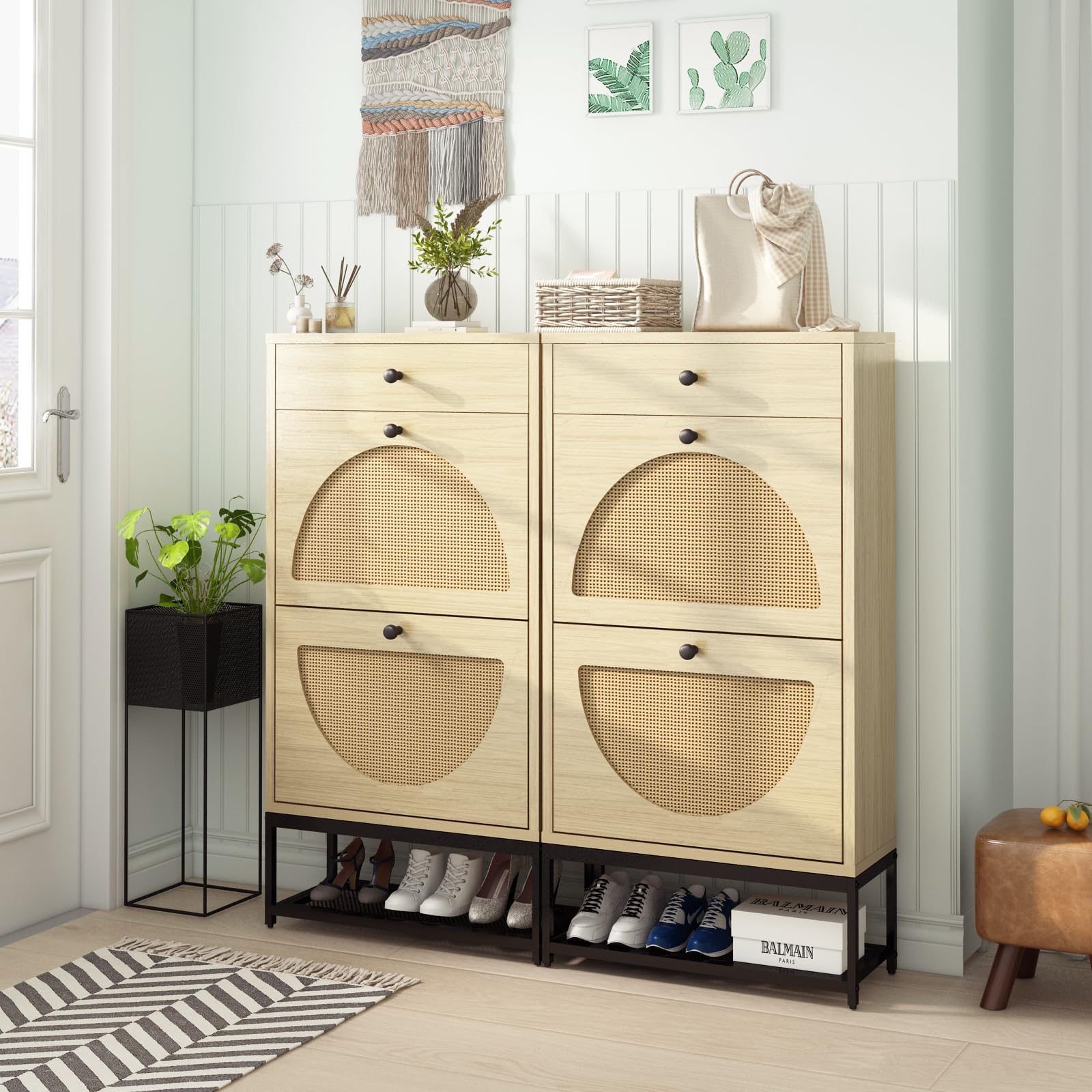 AWQM natural rattan shoe cabinet (set of 2), free-standing shoe rack for corridor