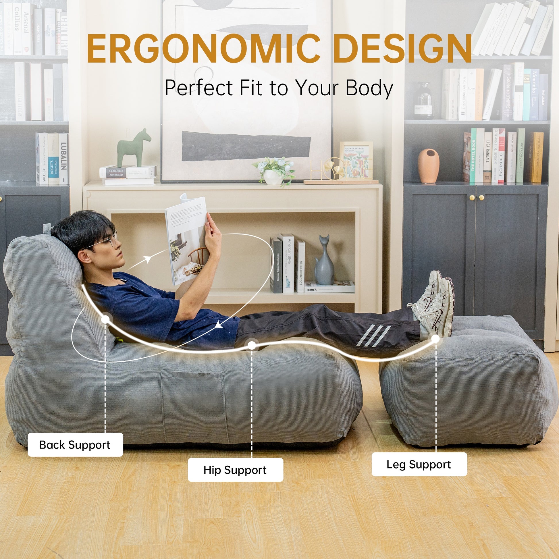 【Durable lazy sofa chair】:AWQM bean bag sofa and footstool use high-density memory foam, which is better than traditional bean filling, maintains shape and comfort, and is extremely durable for long-term use.