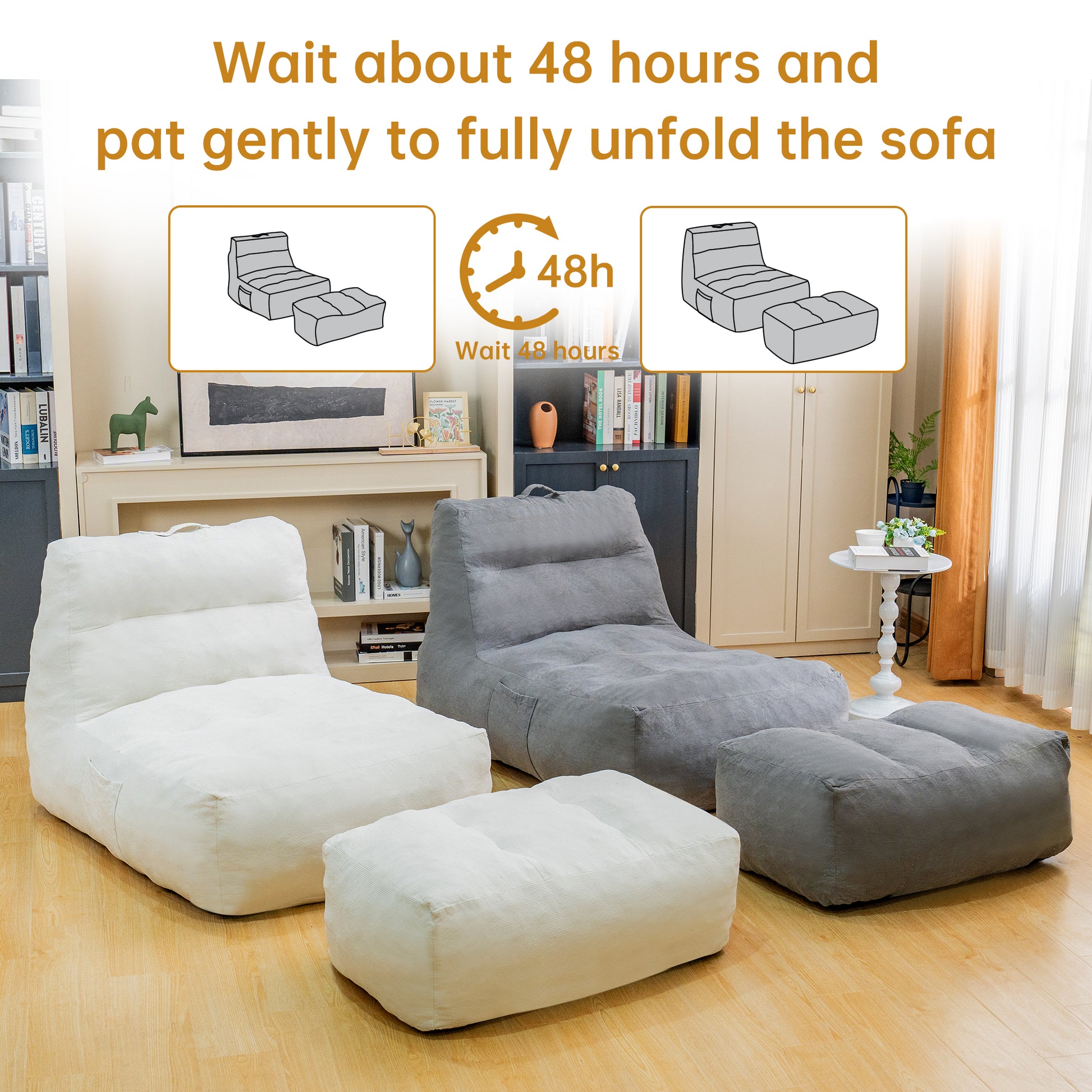 【No assembly required】:The bean bag chair is pre-filled and needs to be left for 48 hours after receipt to allow the filling to regain its elasticity for immediate enjoyment.