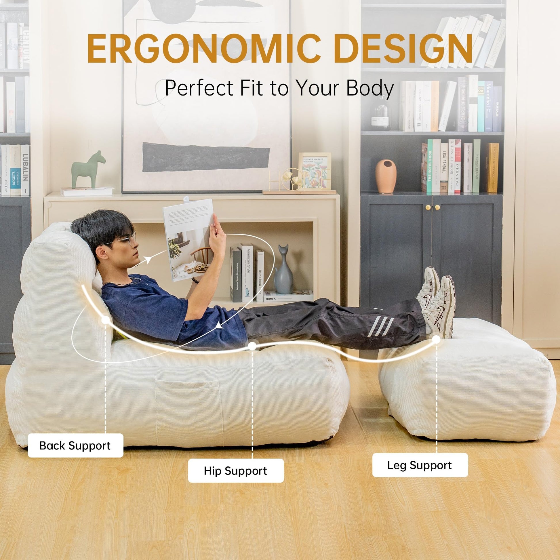 AWQM Oversized Bean Bag Adult Sofa Chair with Ottoman