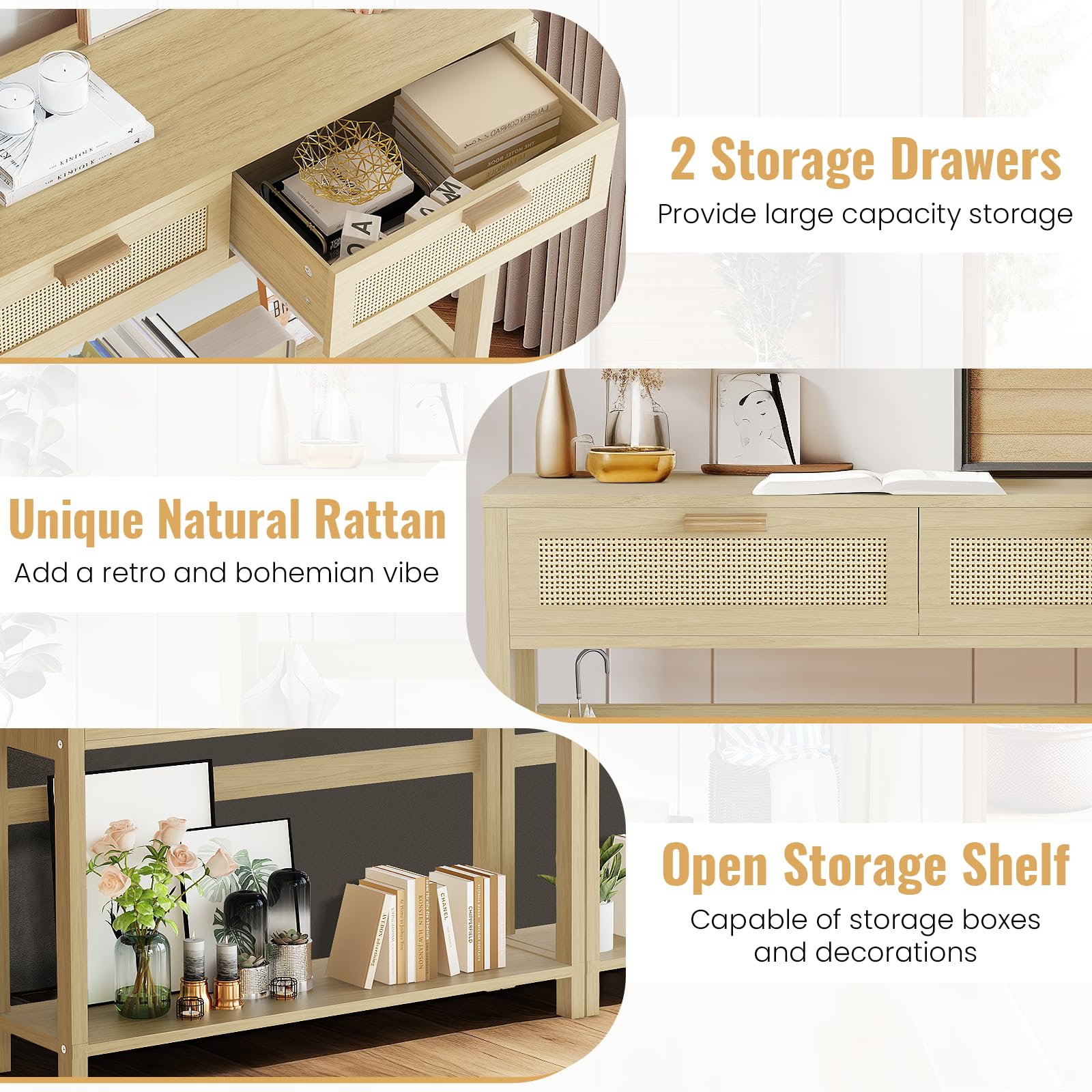 - 【Sturdy Durable】: Featuring sturdy premium quality MDF board and rattan design, this farmhouse console table ensures stability and durability, can hold most decorations, and has a long service life.