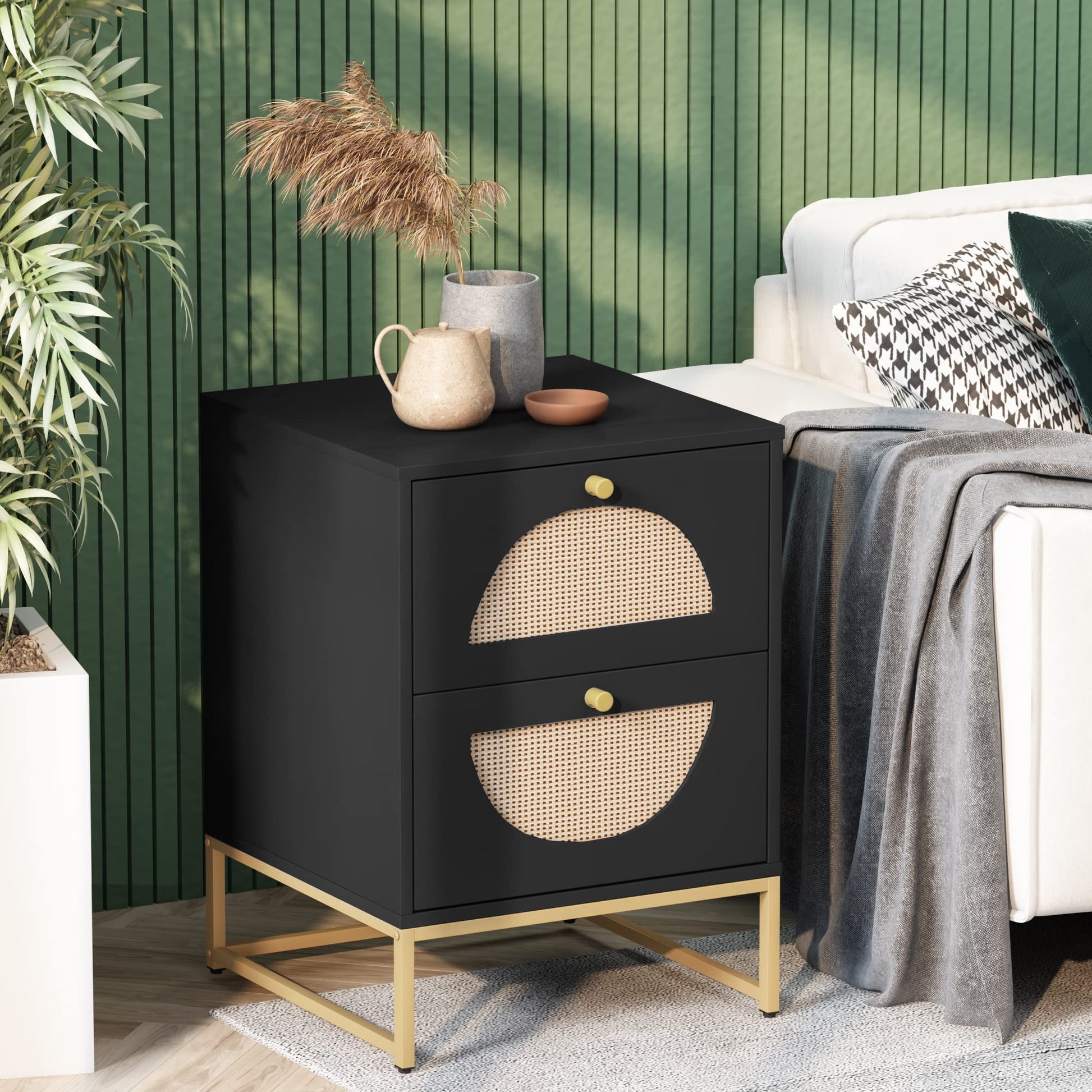 The rattan bedside table is made of natural rattan, high-quality MDF board and high-quality metal leg support, with strong load-bearing capacity and good stability. Equipped with round handles and smooth rails, the drawers can be easily opened and closed.