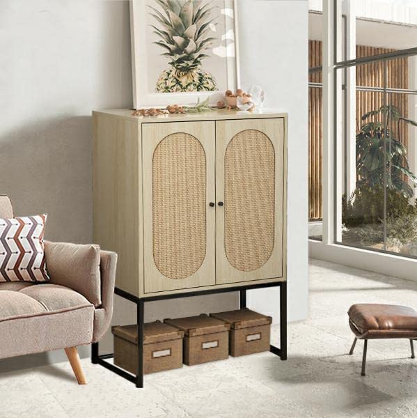 - 【Rattan Accent Cabinet】The rattan decorated door accent console cabinet is a combination of modern and classic, It adopts natural rattan with handmade weaving technology, add a cool and bohemian vibe,delivering perfect visual effect.
