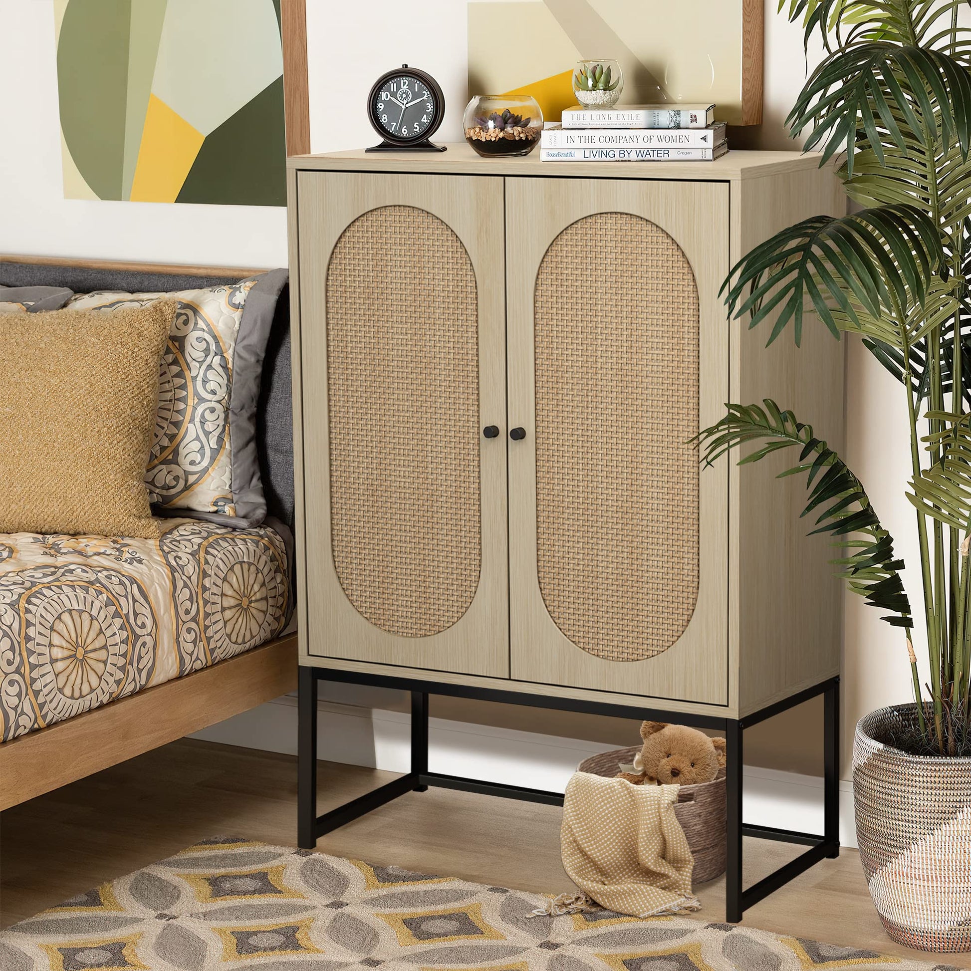 【Rattan Accent Cabinet】The rattan decorated door accent console cabinet is a combination of modern and classic, It adopts natural rattan with handmade weaving technology, add a cool and bohemian vibe,delivering perfect visual effect.