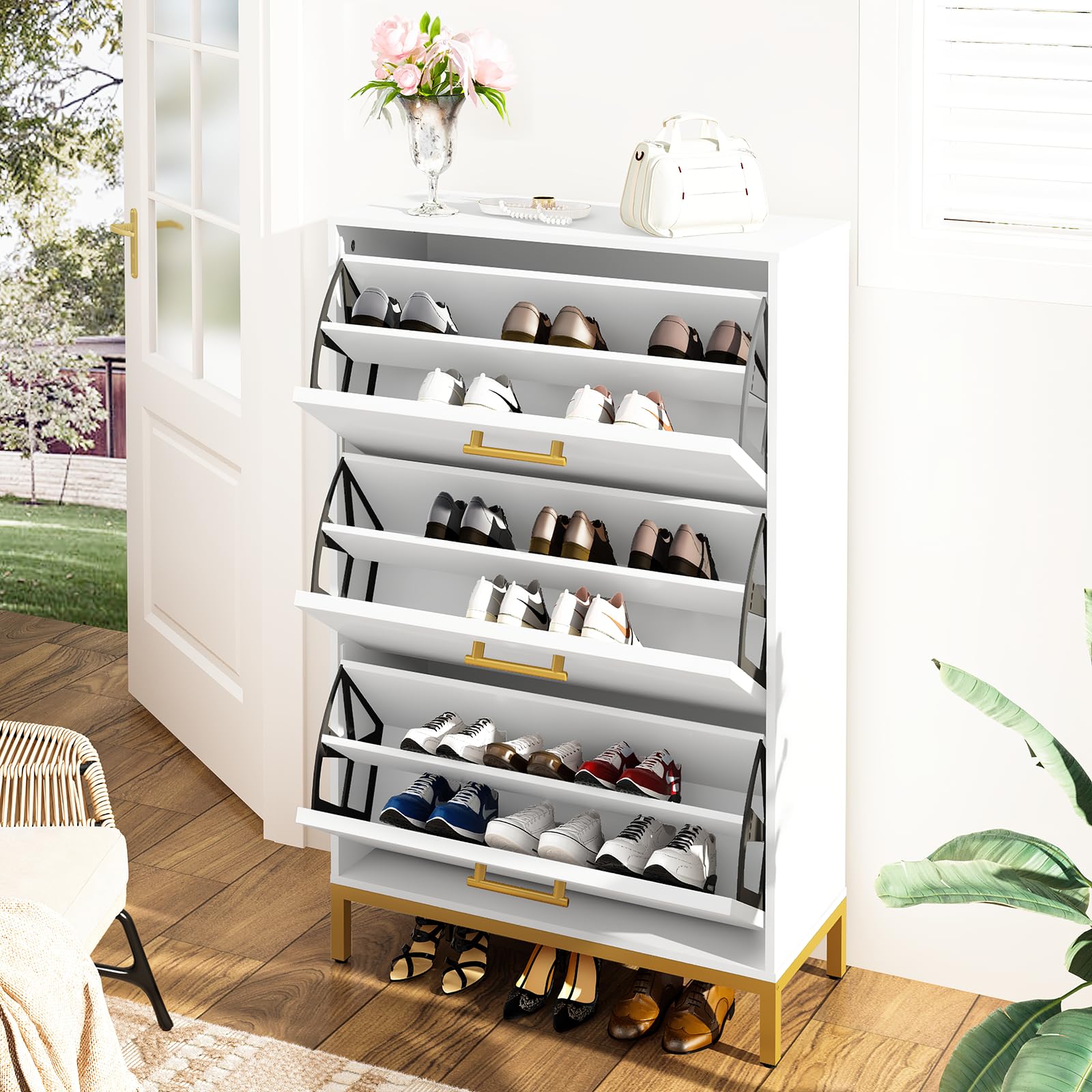 AWQM White Freestanding Flip-Top Shoe Cabinet 18 Pair Shoe Rack Organizer