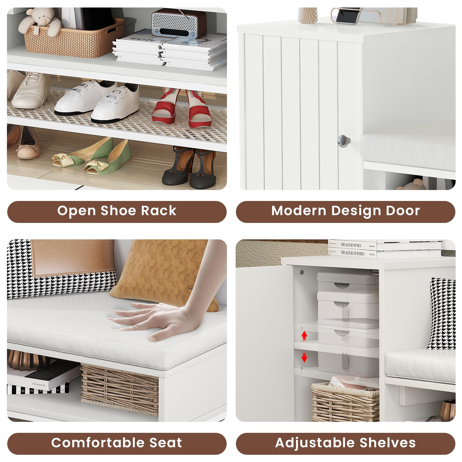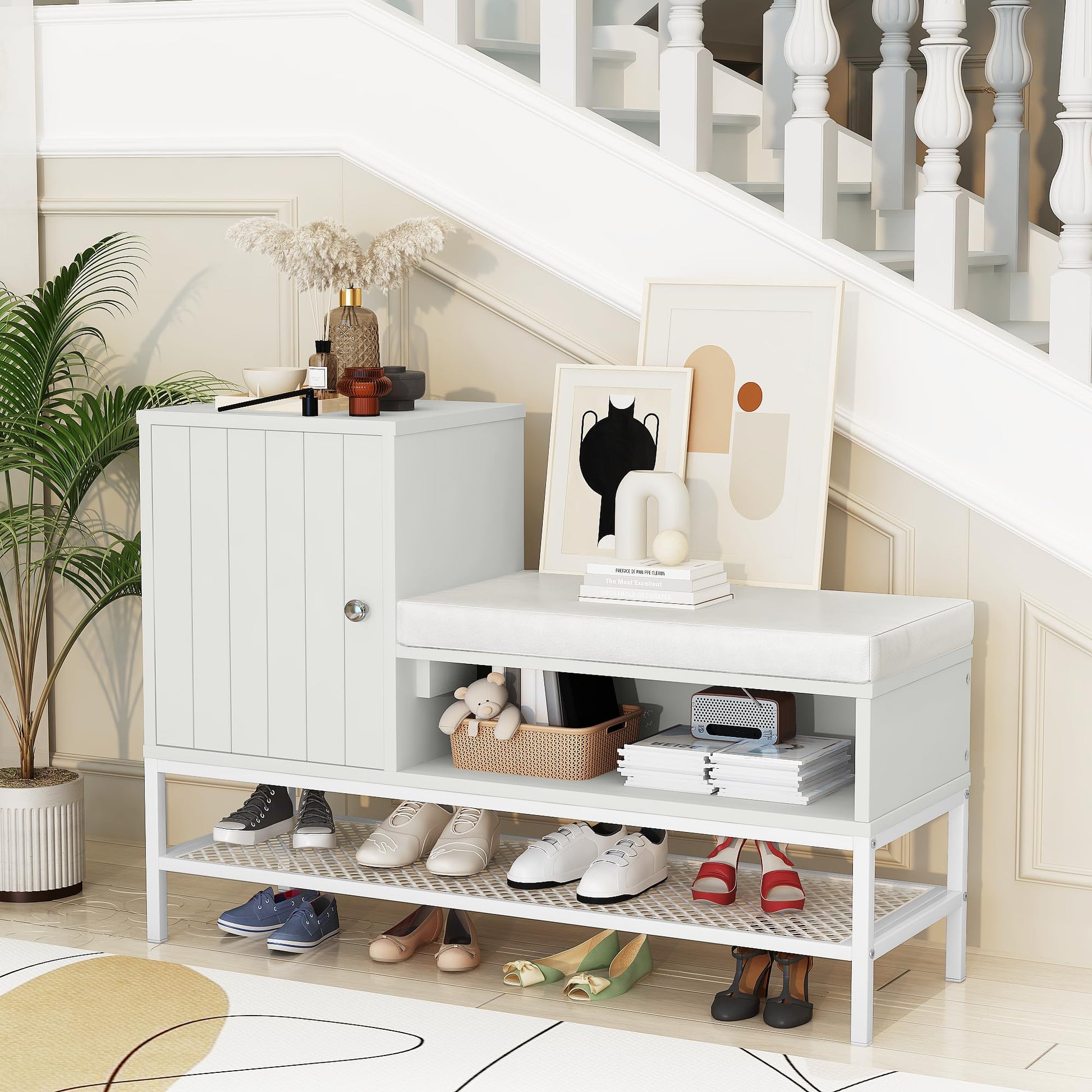 AWQM Modern Shoe Stool with Removable Upholstery and Cabinet Entryway Stool