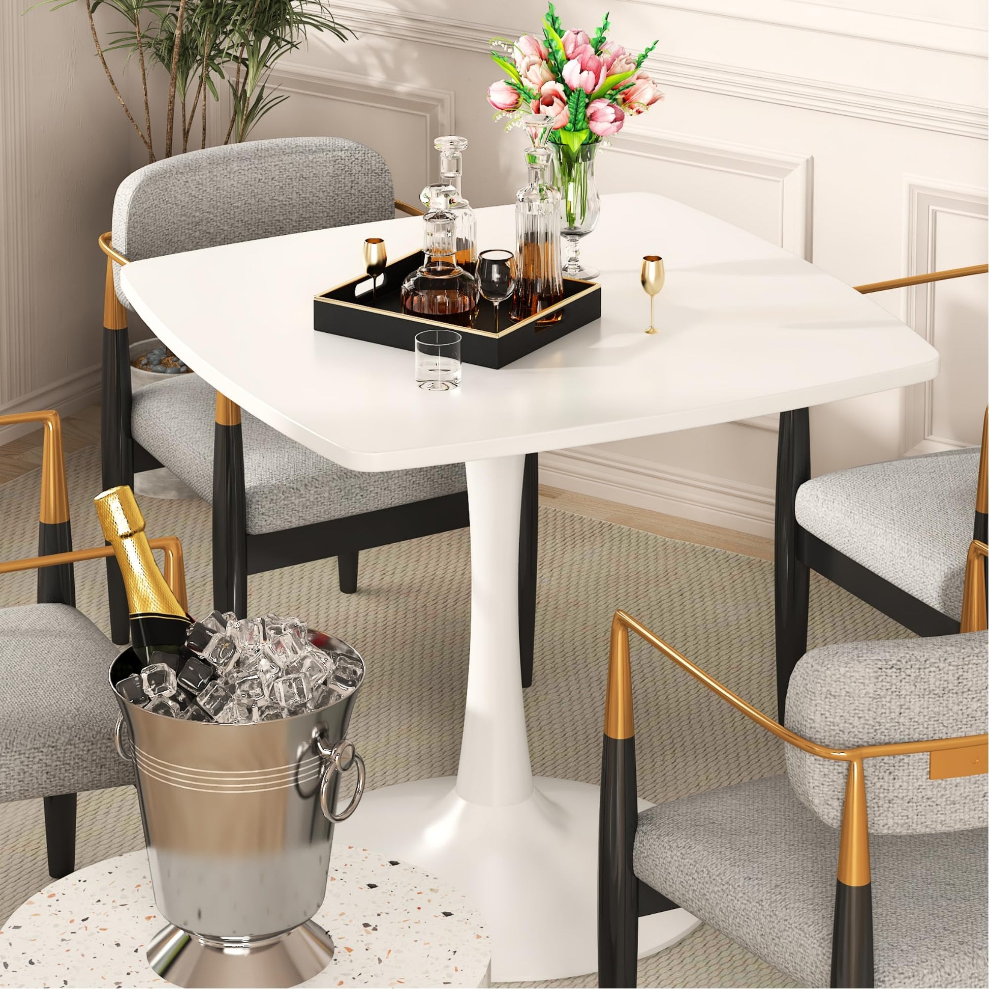 With its natural finish and sleek lines, the Modern Black Square Dining Table can add a touch of elegance and sophistication to your dining space and can be used as a Black Square Tulip Table, small dining table, casual table, office desk, kitchen table, bar table or coffee table. The square curved kitchen table details complete this cozy design, making it one of the perfect centerpieces for your dining area.