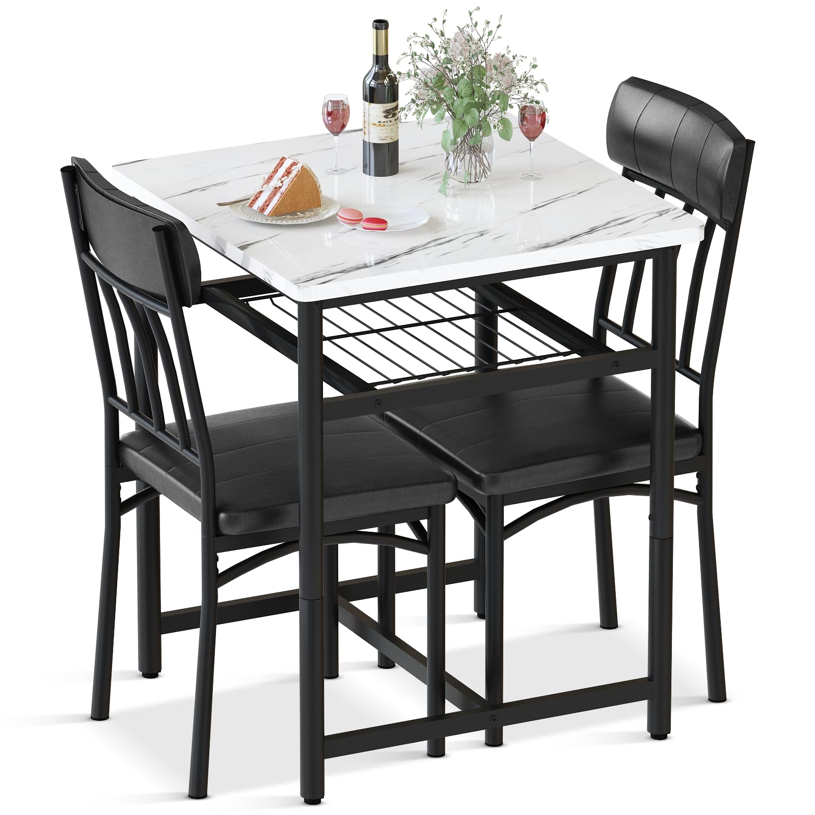 AWQM marble dining table 2 person square dining table set