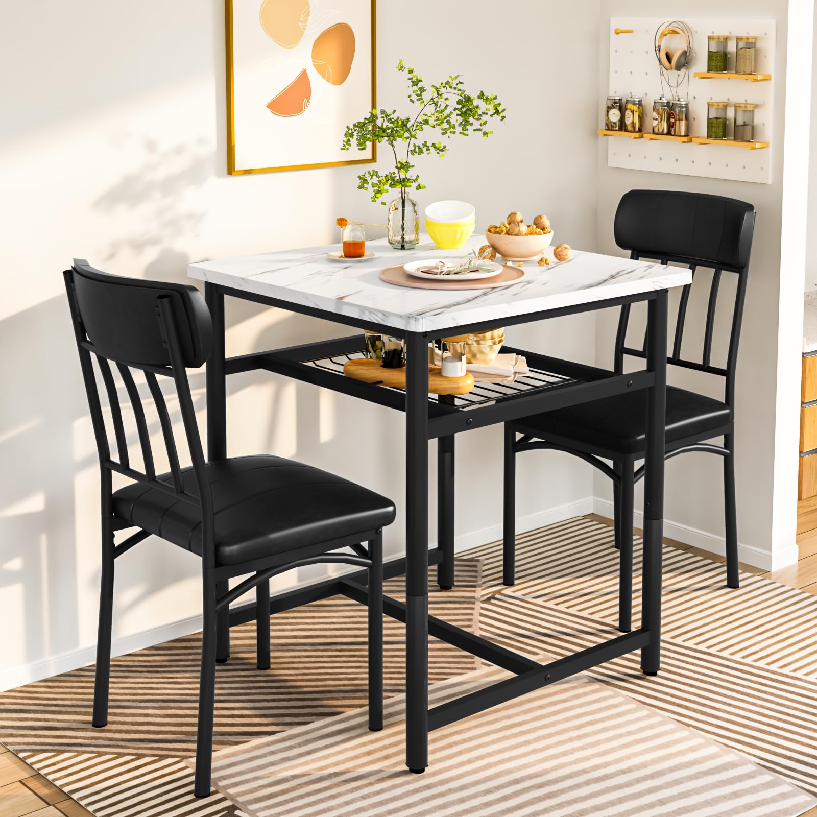 This table set is very stylish and works great for my sister��s new place. The white finish and the marble combined give it a great style without being over-the-top, so it matches the other pieces in her place very well.