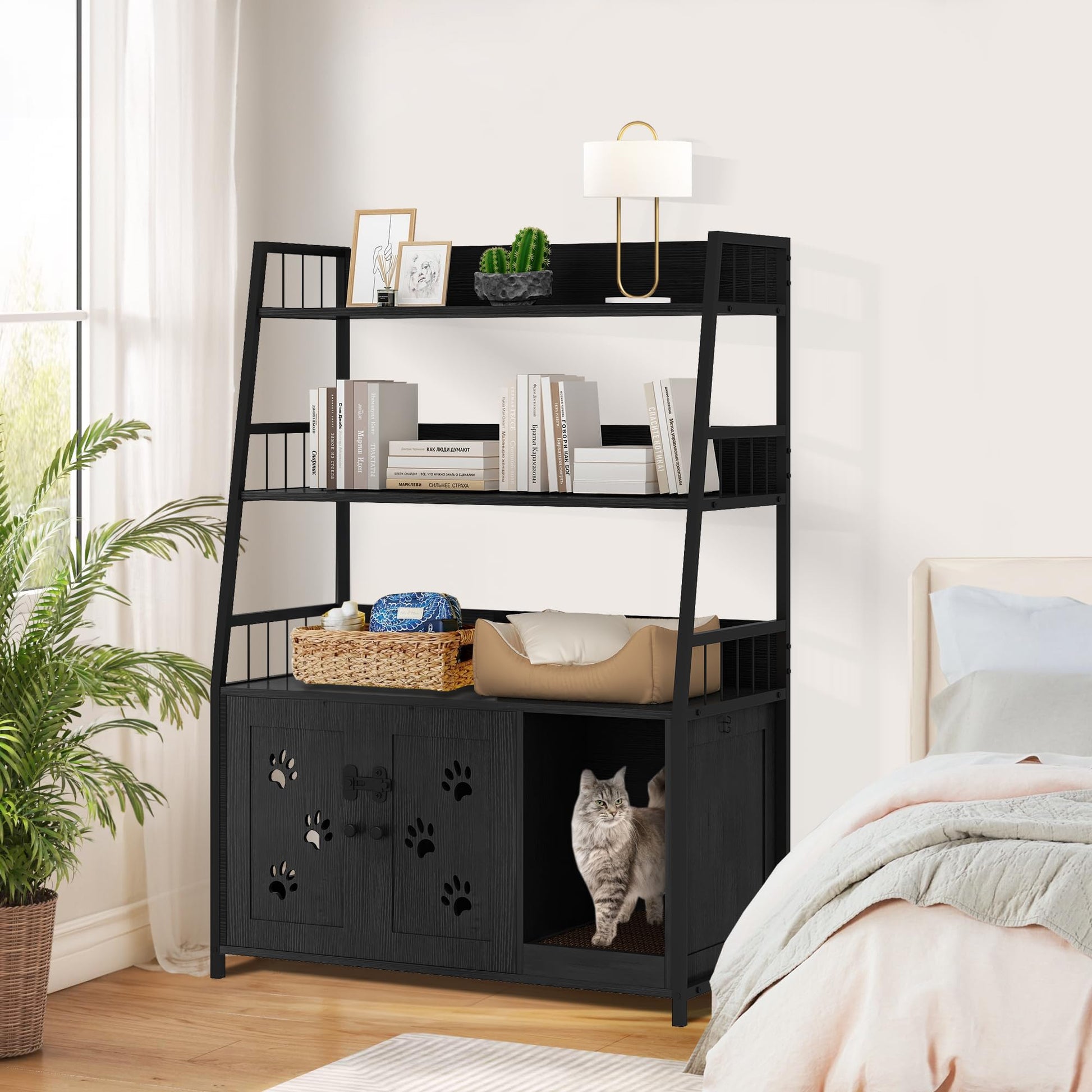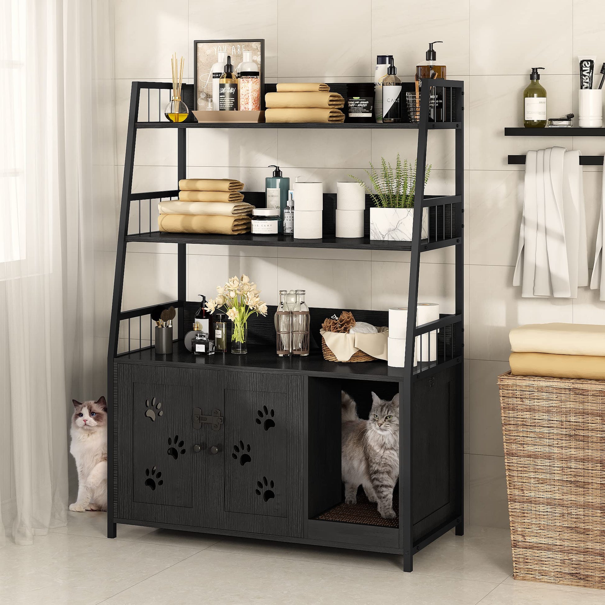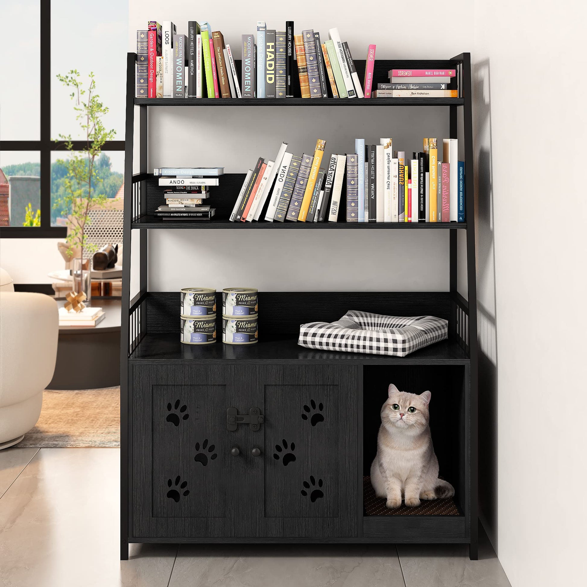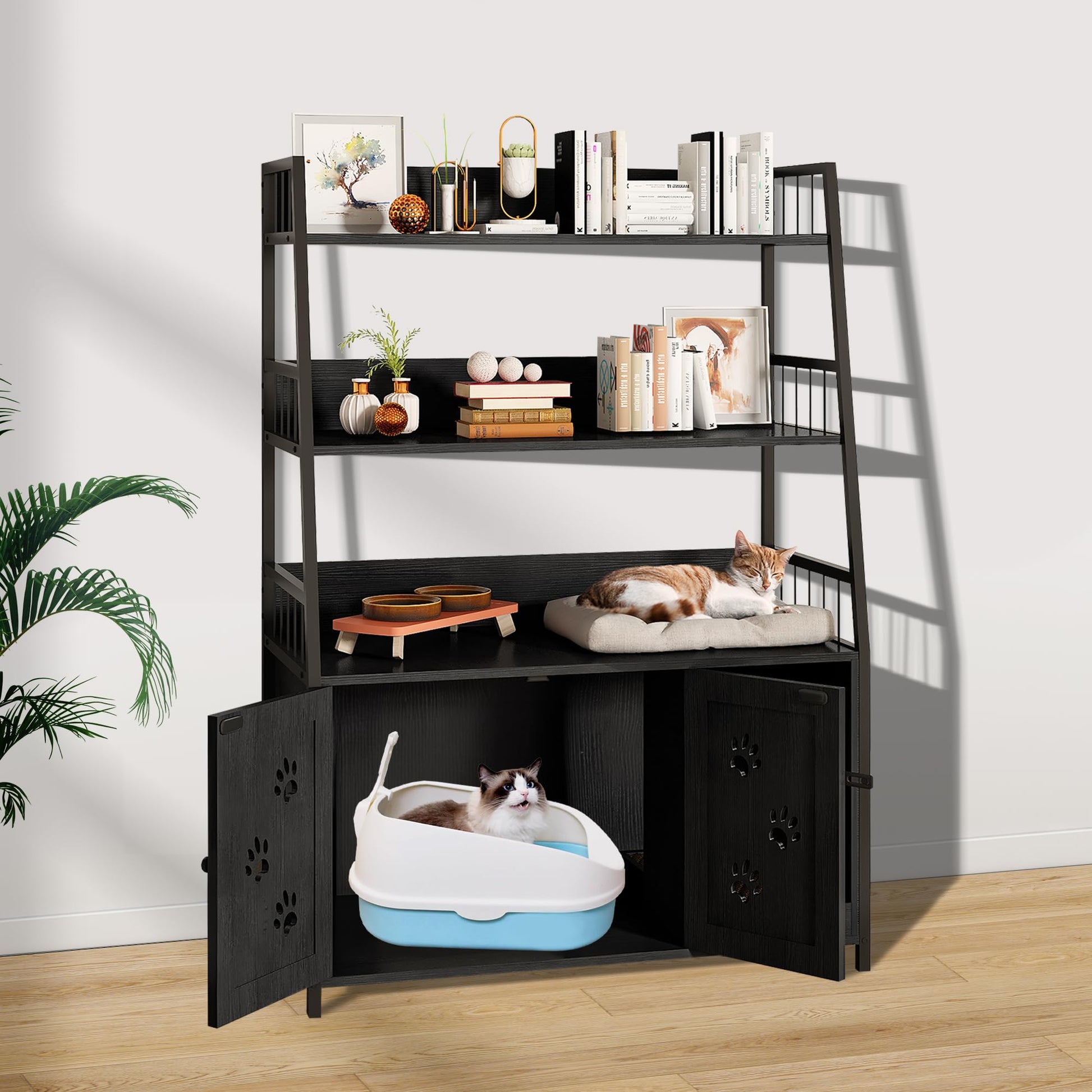 - Multifunctional Cat Litter Box Enclosure - This Multifunctional Cat Furniture is not only a hidden litter box but also can serve as a bookshelf and storage cabinet for your living room, bedroom, bathroom, etc. The lower half of the hidden litter box enclosure is an enclosed litter box that provides your cat with a private space to use the toilet while keeping out bad odors.