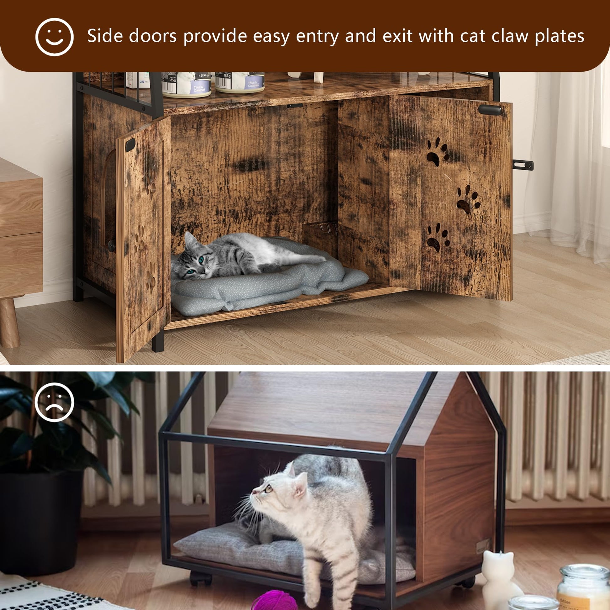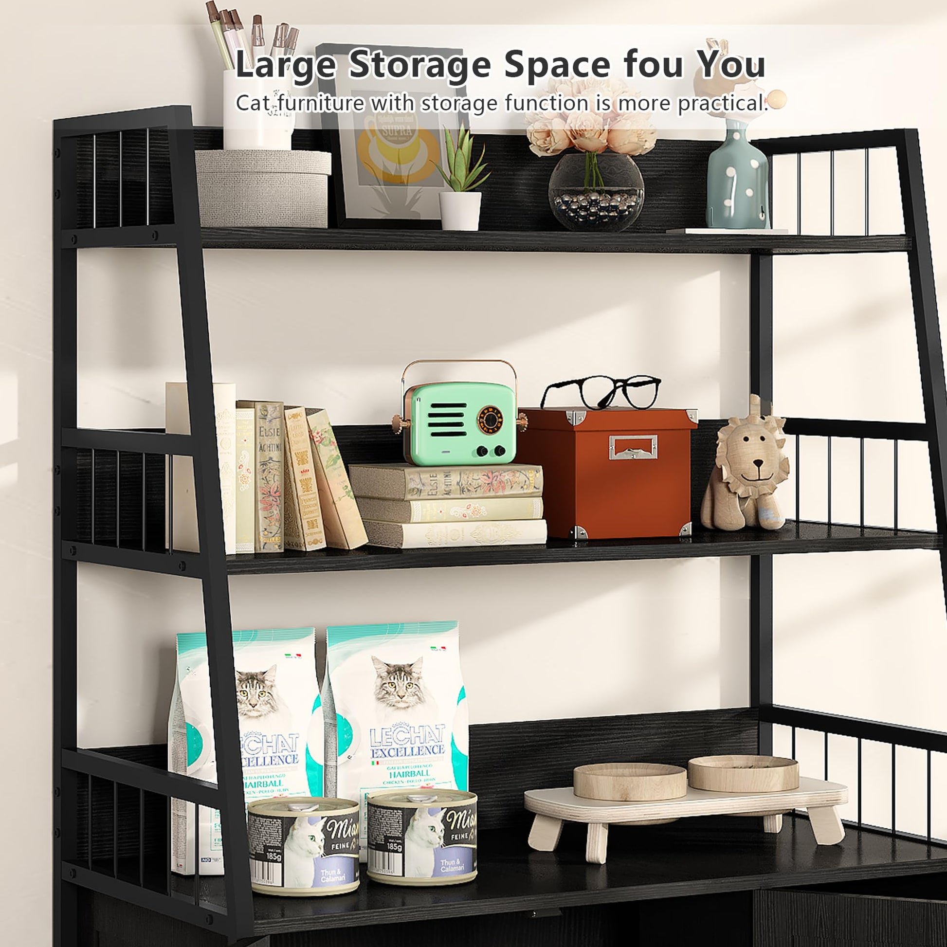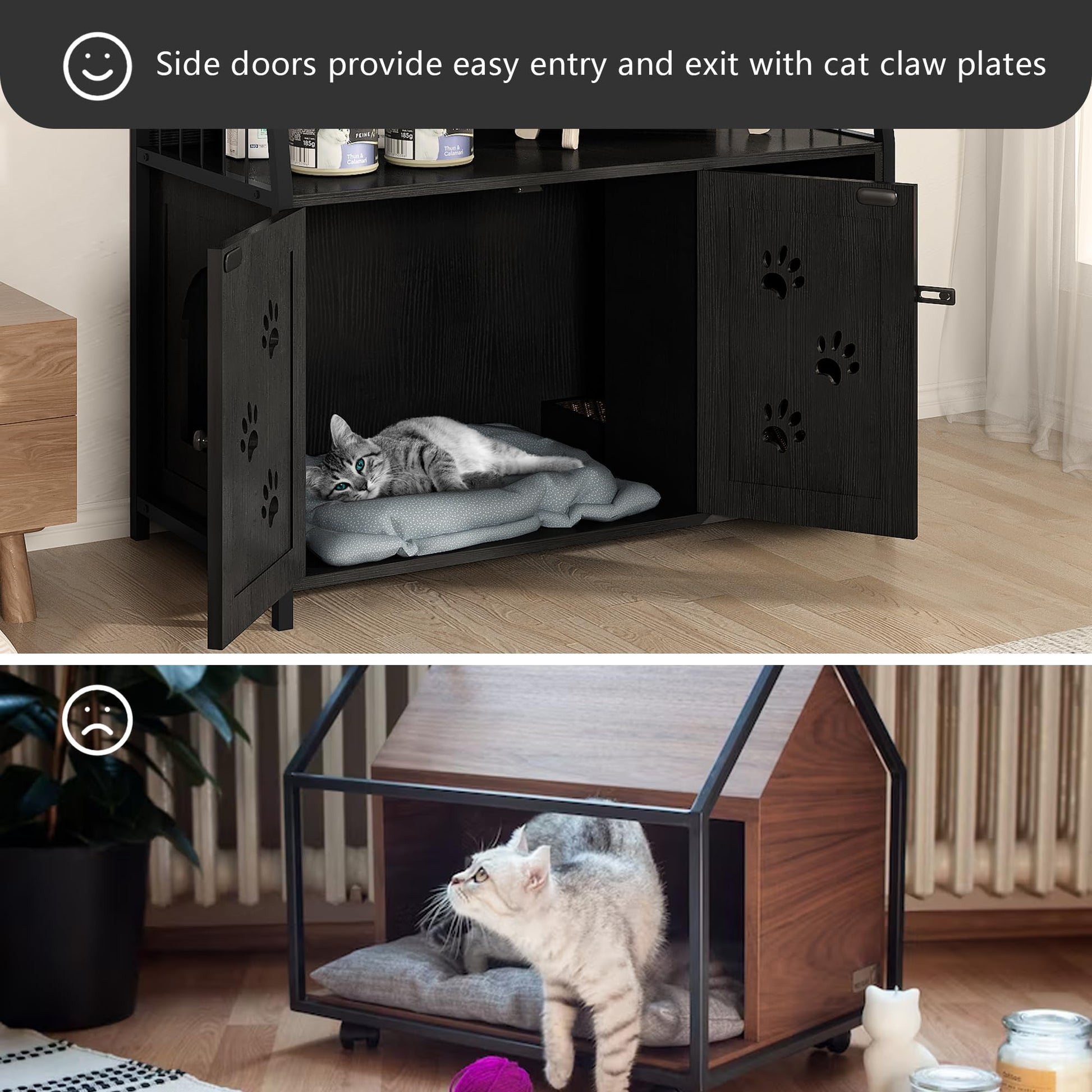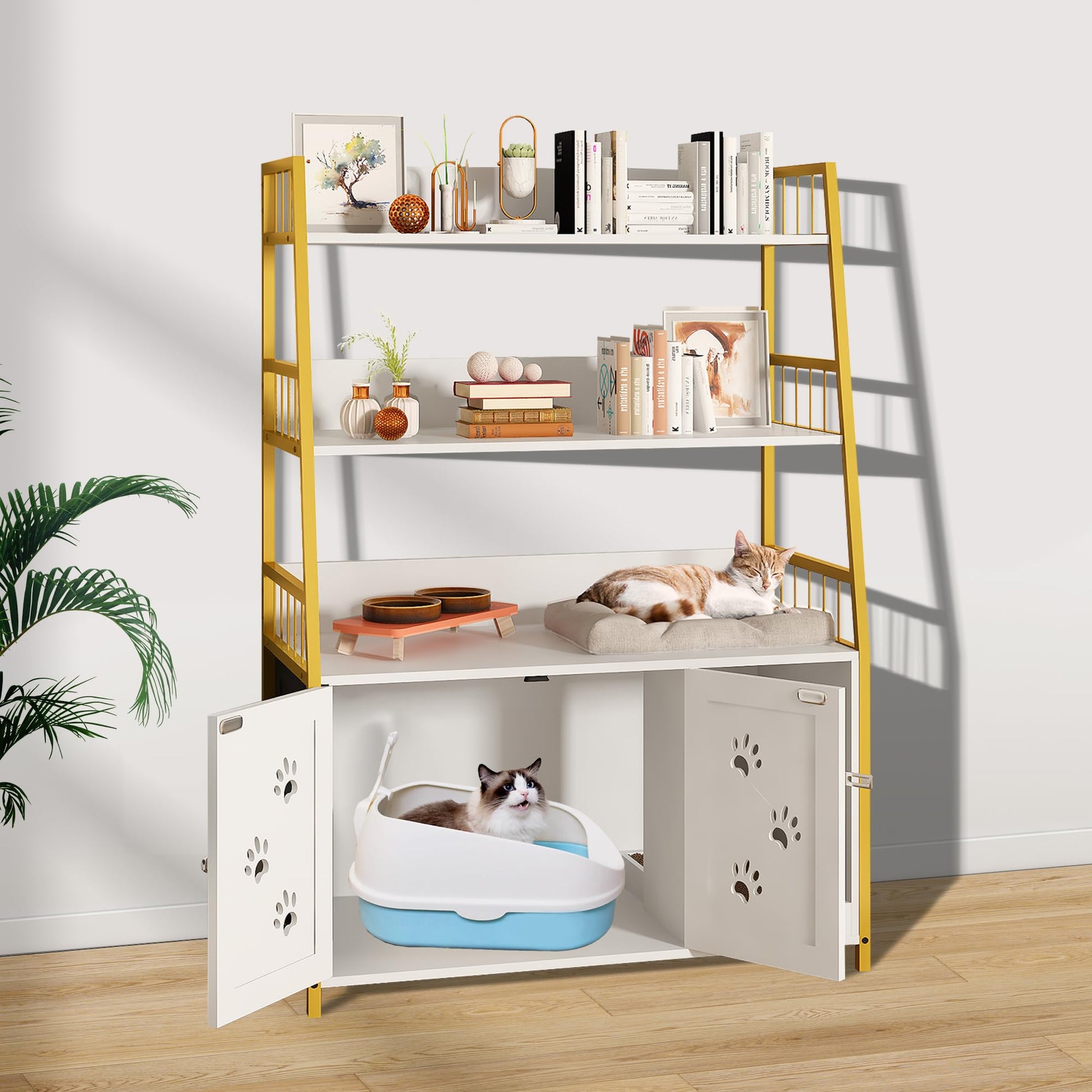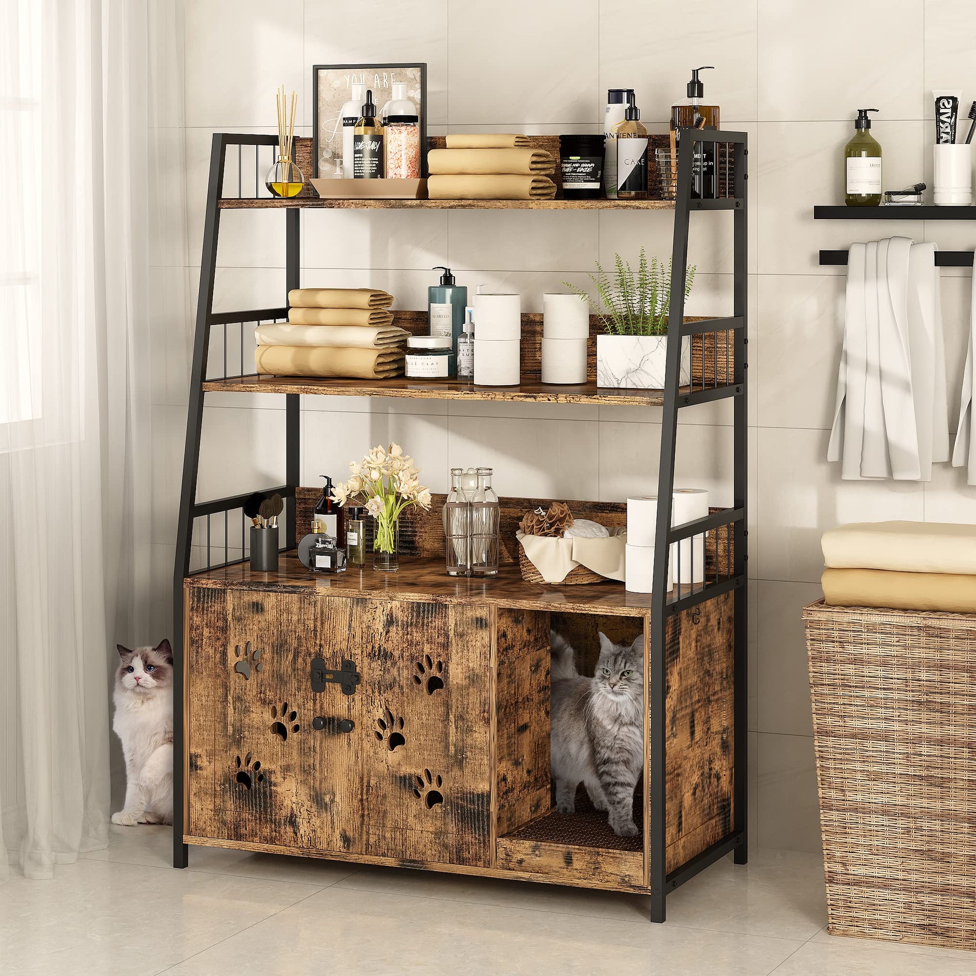 - Multifunctional Cat Litter Box Enclosure - This Multifunctional Cat Furniture is not only a hidden litter box but also can serve as a bookshelf and storage cabinet for your living room, bedroom, bathroom, etc. The lower half of the hidden litter box enclosure is an enclosed litter box that provides your cat with a private space to use the toilet while keeping out bad odors.