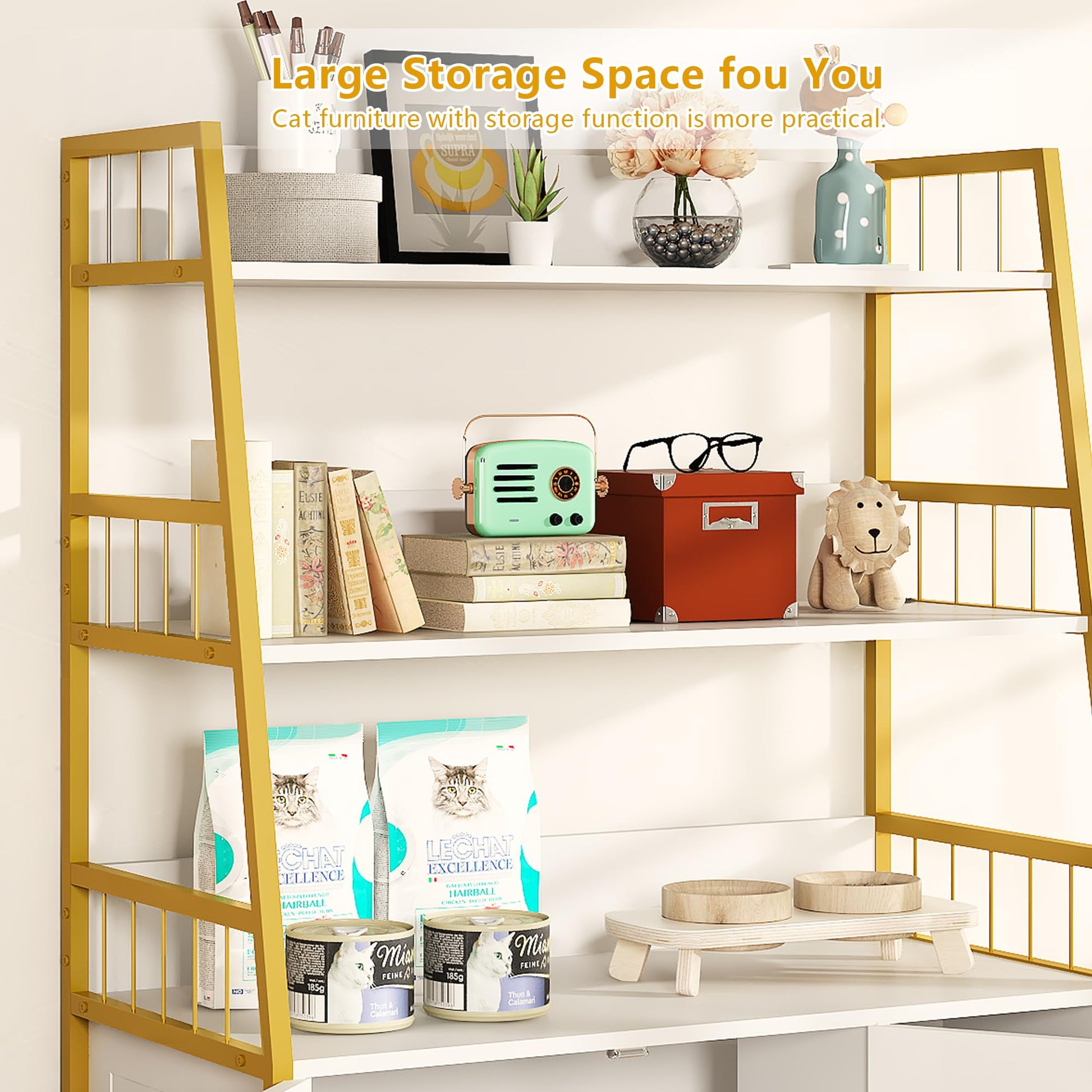 Multifunctional Cat Litter Box Enclosure - This Multifunctional Cat Furniture is not only a hidden litter box but also can serve as a bookshelf and storage cabinet for your living room, bedroom, bathroom, etc. The lower half of the hidden litter box enclosure is an enclosed litter box that provides your cat with a private space to use the toilet while keeping out bad odors.
